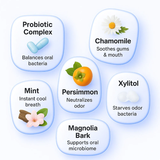 Those just mask odor. Our probiotic formula kills the bacteria that cause badbreath.